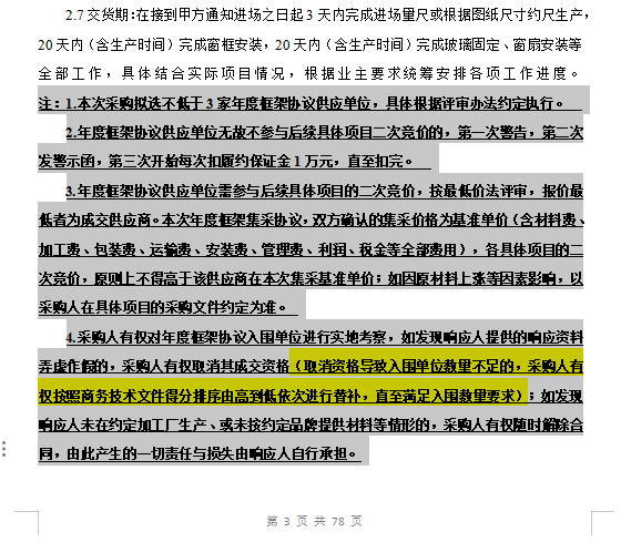 原詢比文件(第3頁)中第一章 采購公告 關(guān)于備注內(nèi)容的調(diào)整(詳見如下增加黃色底色部分)